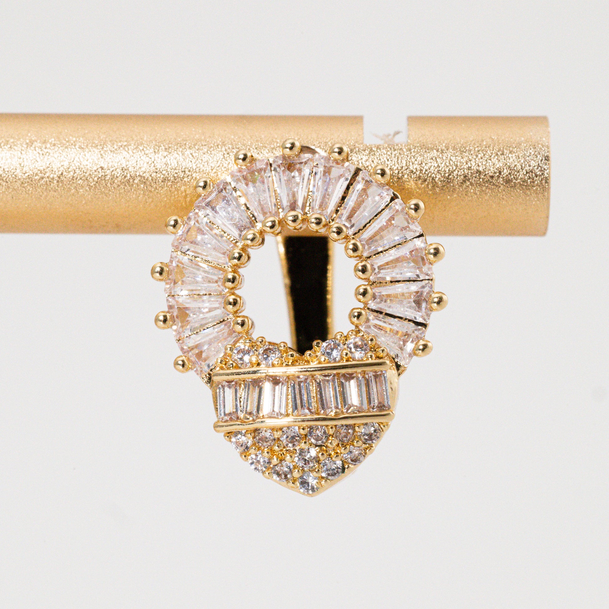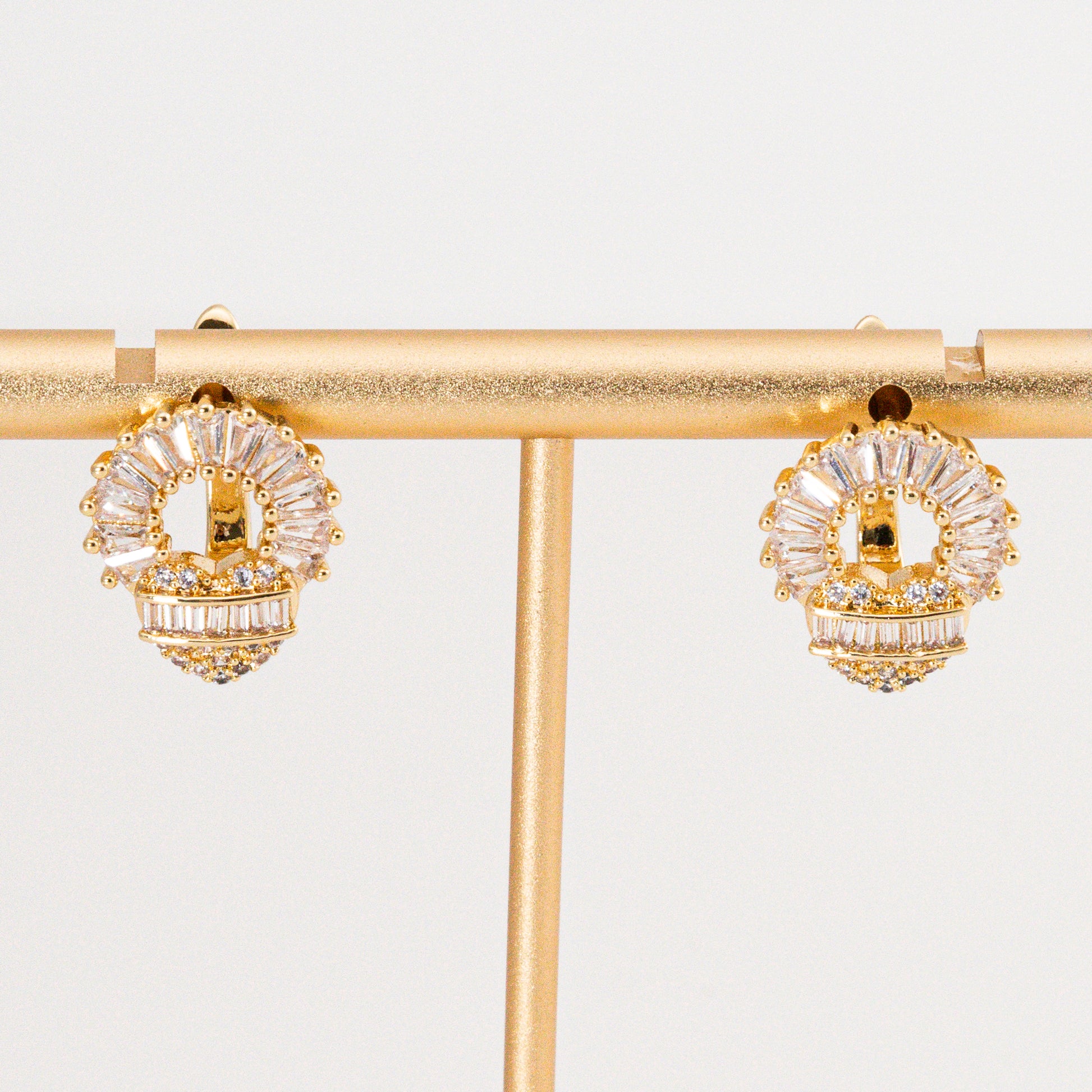 Aretes en oro laminado con un corazón y un círculo con unas circonitas alargadas