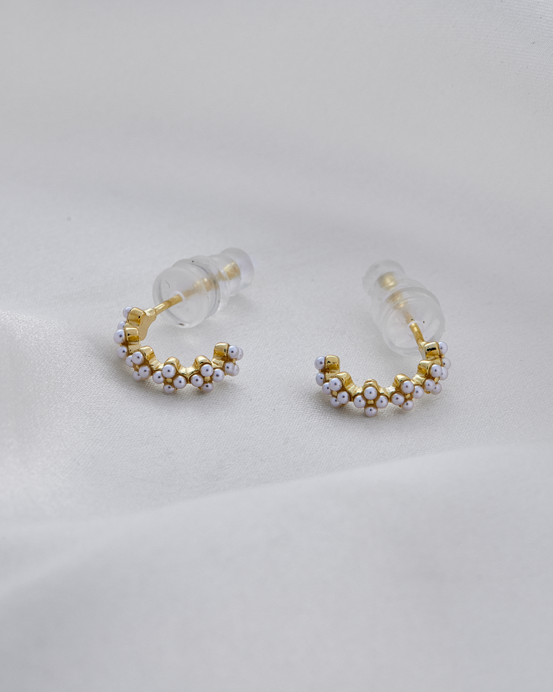 Aretes en plata con baño de oro, hipoalergénico, recubierto con múltiples perlas.