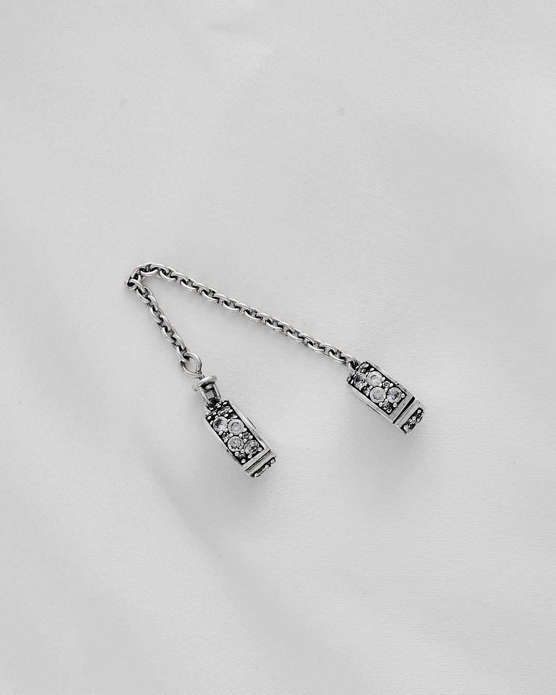 La Guardiana de Brillo es una cadena de seguridad en plata 925 con detalles de micro circones que aportan un destello elegante mientras protegen tu pulsera. Su diseño doble y firme asegura las piezas, combinando seguridad y sofisticación en un solo accesorio.