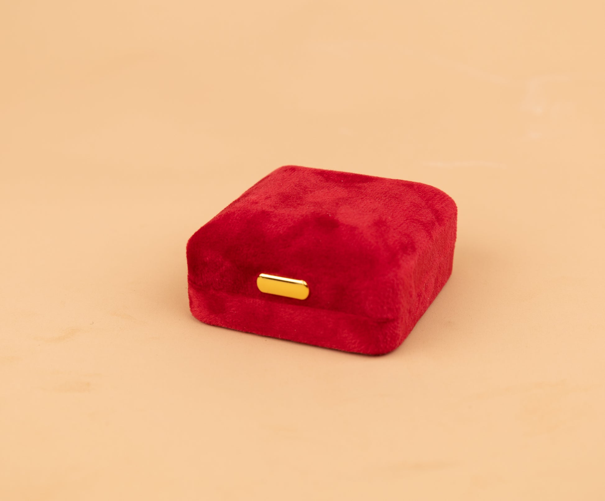 Elegante caja (no incluye anillo de la foto) de presentación en terciopelo rojo, ideal para anillos, cadenas o aretes. Su interior acolchado protege la joya y realza su brillo, mientras el cierre metálico dorado aporta un toque sofisticado. Perfecta para regalos, ocasiones especiales.