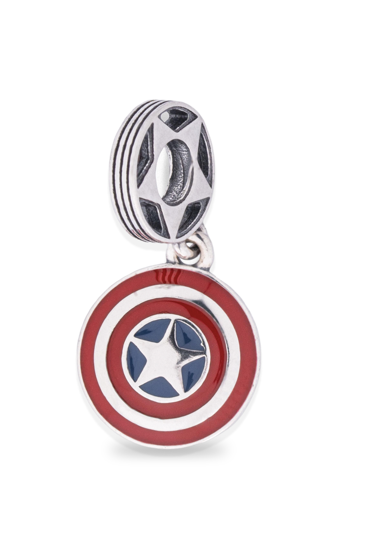 - El escudo del Capitán América brilla con esmalte rojo, blanco y azul.