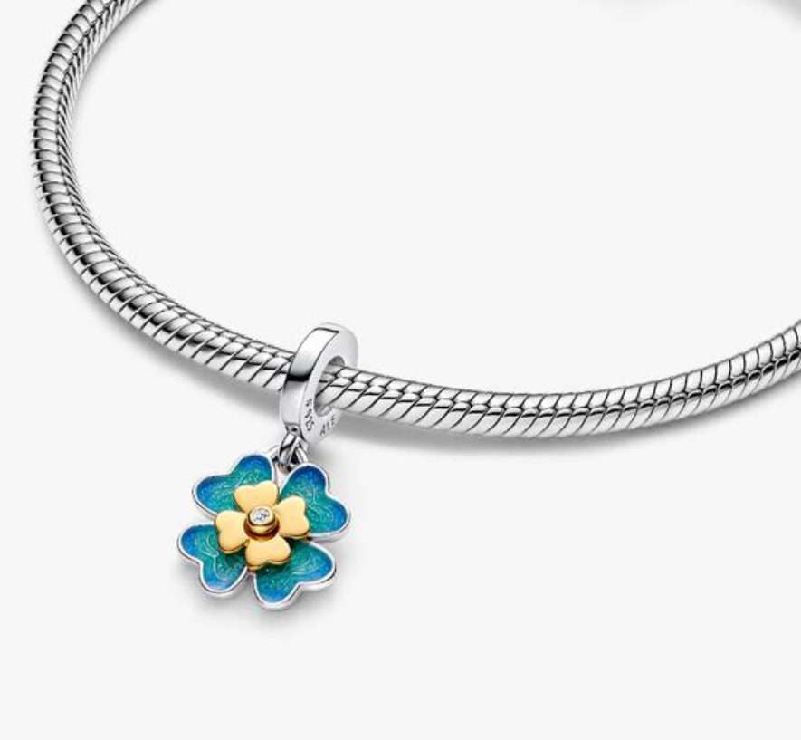 Luce la suerte con este encantador dije en forma de trébol de cuatro hojas, elaborado en plata 925 con esmalte azul degradado y detalle central en tono dorado con circonia brillante. No incluye cambios ni garantía.