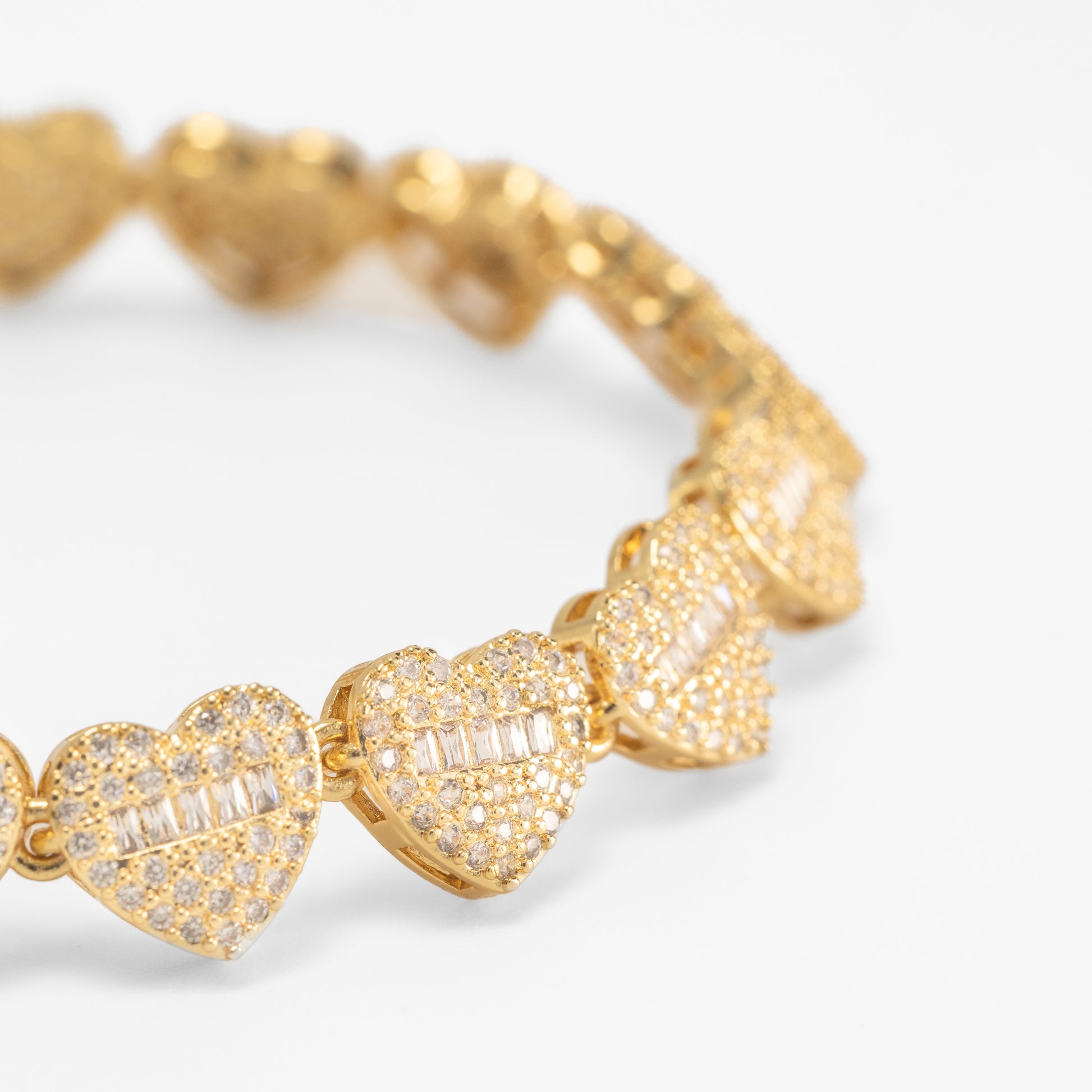 Pulsera Baño De Oro con corazones y circonitas talla única, sirve para talla 17,18,19 cm
