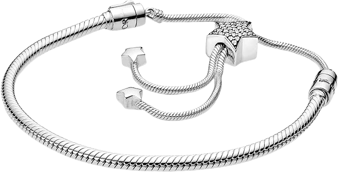 La Estrella de Plata es una pulsera ajustable en plata 925 con diseño de cadena flexible y detalle central en forma de estrella decorada con micro circones. Su sistema de ajuste deslizante permite adaptarla cómodamente a cualquier muñeca, combinando brillo, elegancia y versatilidad.