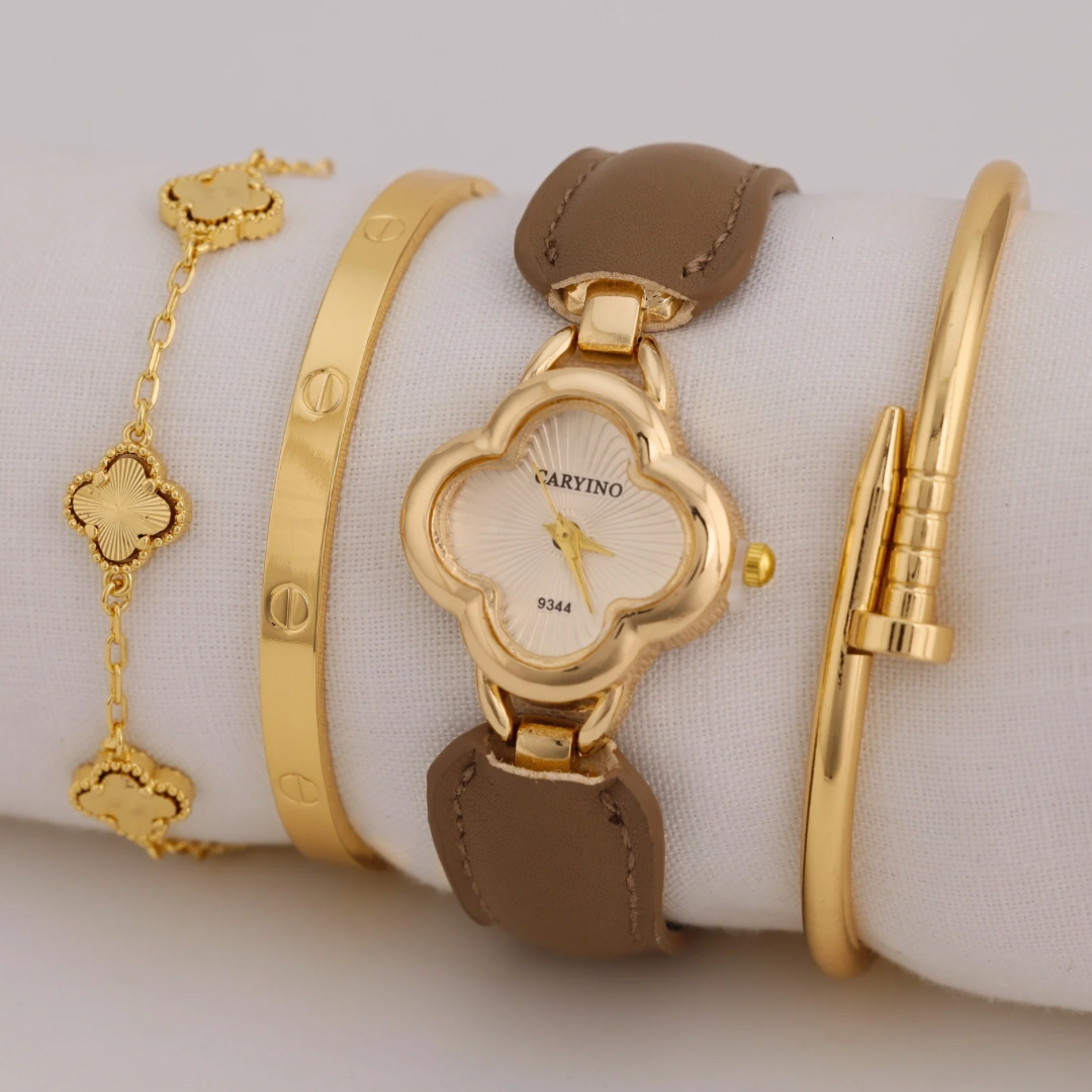 Reloj Arabe Beige Trebol Dorado RA06