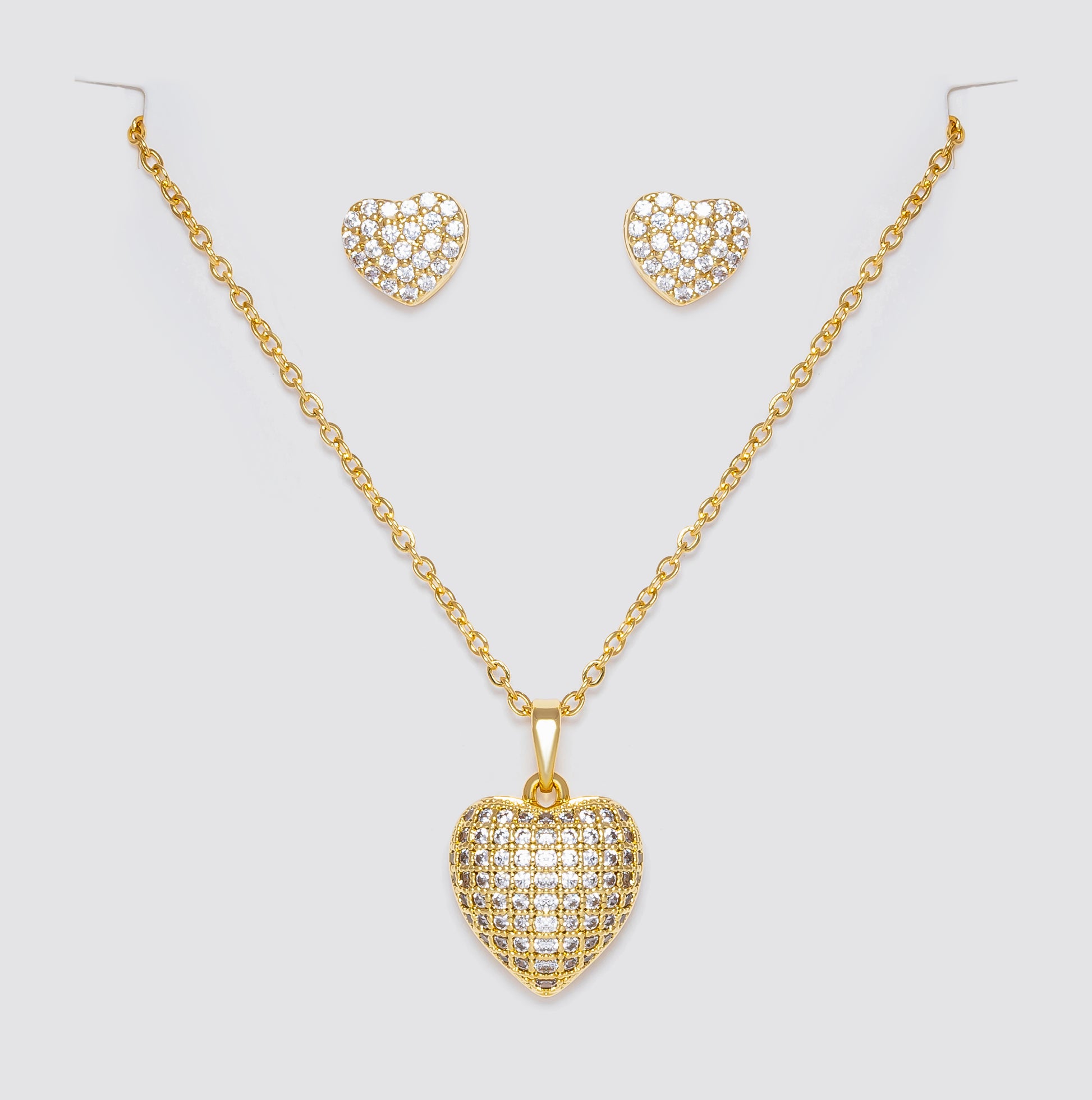 Conjunto en oro laminado. Incluye collar y aretes. Un símbolo de fuerza y conexión.